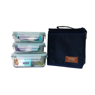 Bộ hộp thủy tinh GLASSLOCK 720ml + 450ml ×2 và túi giữ nhiệt oval