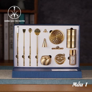 Dụng cụ đốt trầm hương, đồ đốt trầm hương bằng đồng nguyên khối cao cấp loại 1, bộ 12 món