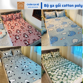 Ga gối cottong poly m6/m8/2m2 drap giường,ga trải giường+2 vỏ gối đầu đủ kích thước mẫu mã đa dạng