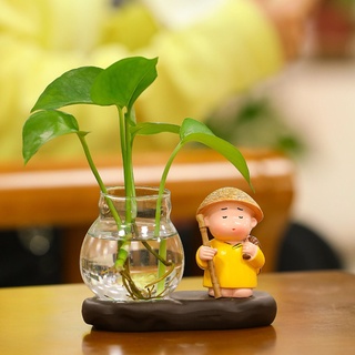 Bình thủy sinh trồng cây kèm tượng biểu cảm dễ thương Ráp trang trí bàn học, bàn làm việc, quà tặng bạn bè