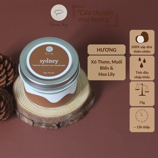 Nến Thơm Trang Trí, Cao Cấp, Tự Nhiên Aroma Story Hương Xô Thơm, Muối Biển Và Hoa Lily Sydney 75g