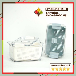Hộp đựng thực phẩm tủ lạnh 2 lớp Hokori BEHOMEMALL Hộp đựng hoa quả trái cây cao cấp Việt Nhật có lỗ thoát khí