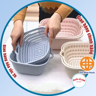 Bộ rổ vuông 2 lớp Việt Nhật (MS:3288/3289/3290) - Bộ rổ kèm chậu hứng nước rửa rau củ đựng hoa quả trái cây Br 01542