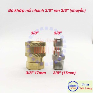 [CAO CẤP] Bộ khớp nối nhanh đầu ra dùng cho máy rửa xe công nghiệp đầu ren 22mm cốt 3/8inch - nguyên bộ đồng - BKNN3/8
