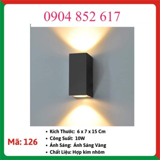 Đèn LED gắn tường hắt tường hình khối chữ nhật hắt 2 đầu hiện đại trang trí ngoài trời Decor Hợp Kim Tĩnh Điện 126 BHTK