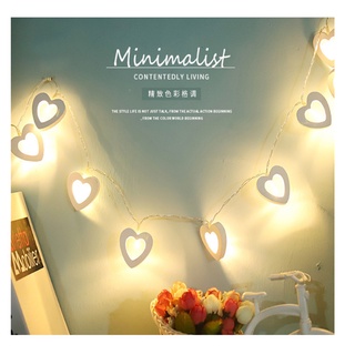Dây Đèn Led Hình Trái Tim Gỗ 3 mét 20 Tim Màu Vàng Nắng Ấm Áp Trang trí