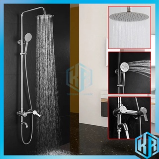 Bộ sen cây tắm đứng nóng lạnh Inox 304 màu Trắng mờ với bát sen và tay sen tròn dẹt cao cấp