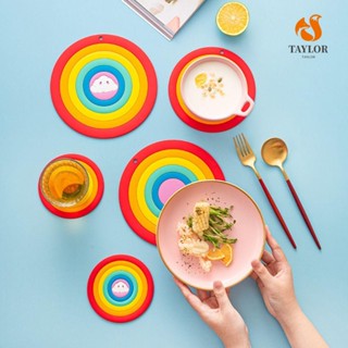 TAYLOR1 Đế Lót Ly Hình Tròn Họa Tiết Cầu Vồng Bằng Silicone Cách Nhiệt Tiện Dụng Cho Gia Đình