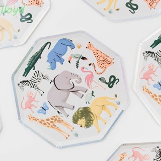 Set 8 Khay Giấy Hình Lục Giác Họa Tiết Voi Xanh Dùng Một Lần Trang Trí Tiệc