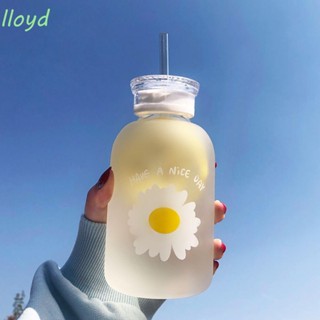 Bình Nước Trong Suốt 480ML Có Nắp Đậy Kèm Ống Hút Họa Tiết Hoa Cúc Nhỏ