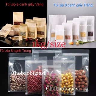 {1kg/size} Túi zip 8 cạnh giấy trắng/ giấy vàng có cán màng, túi zip 8 cạnh trong đựng hạt, đậu, bột.. (hàng đẹp loại 1)