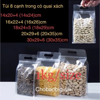 {1kg/size} Túi zipper 8 cạnh trong quai xách form ngang đựng bánh, trái cây, ngũ cố ... (hàng đẹp - Sp y hình)