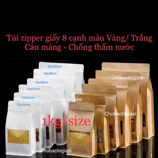 {1kg/size} Túi zip 8 cạnh giấy màu Vàng/Trắng đáy vuông cán màng - chống thấm nước sang trọng, hàng đẹp (sp y hình)