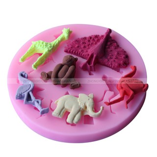 Khuôn silicon 4D thế giới động vật công/chim/hưu/voi/gấu mã HKVC6