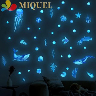 MIQUEL Bộ 2 Đề Can Dán Tường Tự Dính Họa Tiết Sứa Biển Màu Xanh Dương Dạ Quang Sáng Tạo