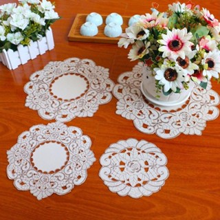 Miếng Lót Ly Thêu Hoa Hồng / Tròn / Chữ Nhật Bằng Vải Ren Xinh Xắn