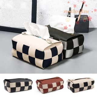 MALCOLM Hộp Đựng Khăn Giấy Bằng Da PU Họa Tiết Kẻ Ô Đan Tay Màu Trắng Đen Trang Trí Nhà Cửa
