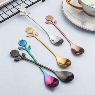 Muỗng / Nĩa Inox Hình Hoa Hướng Dương Mặt Cười Nhiều Màu Tùy Chọn Phong Cách Nhật Bản Dễ Thương