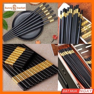 Bộ 30 đôi đũa khảm vàng phong cách Hàn Quốc, chống trơn trượt, dùng cho gia đình, nhà hàng, đũa hợp kim Đen viền Vàng