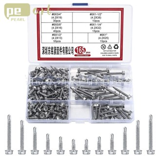 PEARLVN Bộ 190 Đinh Vít Đầu Dẹt Bằng Thép Không Gỉ 410 Độ Bền Cao Cho Vật Liệu Gỗ