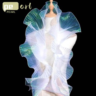 PEARLVN Tấm Vải Voan Phối Bèo Đính Kim Sa Lấp Lánh Màu Trắng Phong Cách Vintage Dùng May Trang Phục