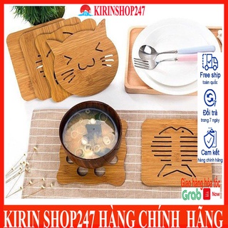 Miếng lót cốc, bát đĩa cách nhiệt bằng gỗ họa tiết ngộ ngĩnh đáng yêu