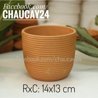 Chậu trồng sen đá đất nung sọc cho xương rồng, cây cảnh mini, cây cảnh để bàn