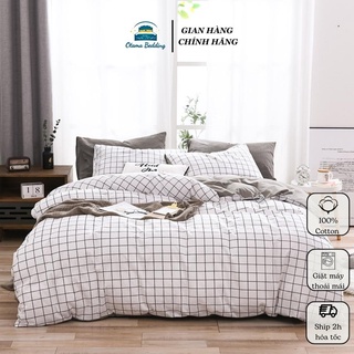 Bộ chăn ga gối đệm 4 món cotton poly ga giường kẻ caro Otama Bedding ra giường bọc nệm phủ hoặc bo chun đủ kích thước