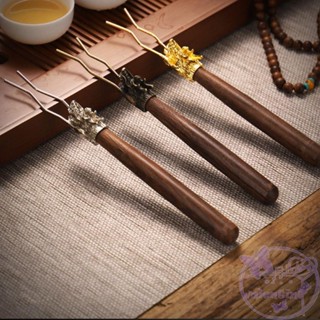 Giá Đỡ Kẹp Nắp Ấm Trà Bằng Thép Không Gỉ Tay Cầm Gỗ Chống Bỏng