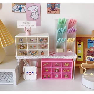 Hộp 9 ngăn kéo,kệ 9 ô mini chống bụi lưu trữ để bàn văn phòng phẩm trang sức/vòng tay/mỹ phẩm dễ thương Hàn Quốc