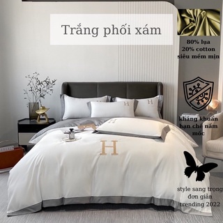 Bộ Chăn Ga Gối Phi Lụa Thêu Chữ "H" Hot Trend 2022 Sang Trọng 10 Tone Màu Siêu Sang