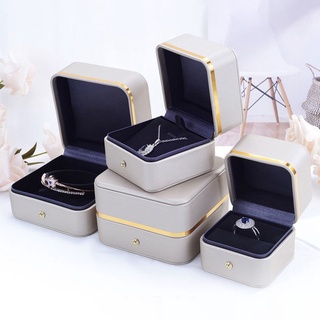 Hộp đựng trang sức bằng da viền vàng cao cấp dành cho nhẫn/mặt dây chuyền/dây chuyền/ngọc trai