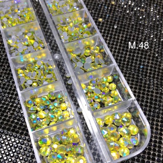 Đá khay chân keo mix size cao cấp 16 khía, siêu sáng, không bong chân - khay 1440v màu trà mã 48