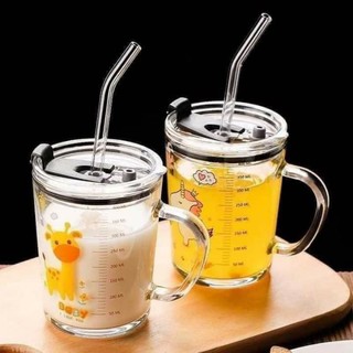 Cốc thủy tinh chia vạch ( tặng 1 ống hút silicon)