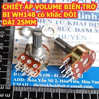 3 cái CHIẾT ÁP VOLUME BIẾN TRỞ BI WH148 có khấc ĐÔI DÀI 20MM 50K kde8329