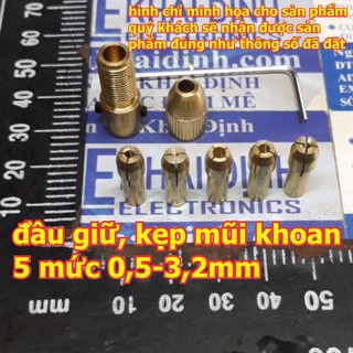 đầu giữ, kẹp mũi khoan 5 mức 0,5-3,2mm, trục 3.17mm/2.3mm/2mm chuck đồng kde3762