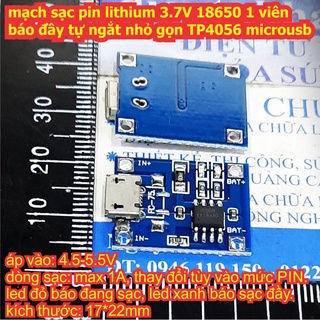5 cái mạch sạc pin lithium 3.7V 18650 1 viên báo đầy tự ngắt nhỏ gọn TP4056 microusb kde8155