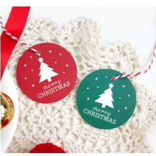 Set 10 tag có dây gắn túi bánh, hộp bánh trang trí hình cây thông Merry Christmas xanh/ đỏ