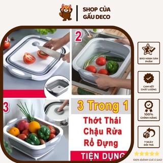 Chậu Gấp Gọn Kiêm Thớt Và Rổ Đựng [FREESHIP] - Thớt 3 In 1 Gấp Gọn, Đa Năng,Chậu Thông Minh - BE DECO