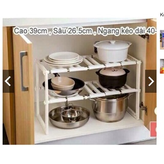 Kệ gầm bếp 2 tầng làm bằng khung inox chịu lực giúp để xoong nồi và dụng cụ bếp tiết kiệm diện tích