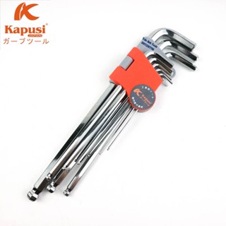 Bộ lục giác bi 9 chi tiết Kapusi Japan cao cấp chất liệu S2 dày dặn cứng cáp, bộ lục giác bi chất lượng nhật bản