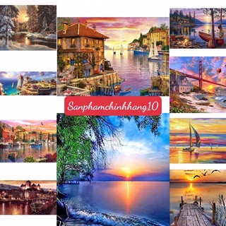 Tranh tô màu theo số Tranh sơn dầu số hoá hình phong cảnh 10 size 40*50cm kèm khung