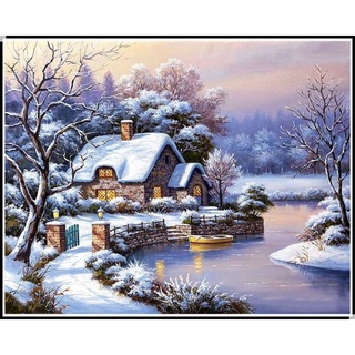 Bộ Tranh Đính Đá 5D Toàn Diện Họa Tiết Ngôi Nhà Tuyết / Vuông Độc Đáo DIY