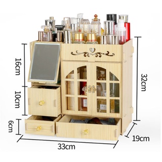 Kệ Đựng Mỹ Phẩm Gỗ 3 Ngăn Có Gương