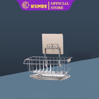 Giá Để Giẻ Rửa Bát Có Khay Hứng Nước KUNBE Chất Liệu Inox Dán Tường Không Cần Khoan Đục