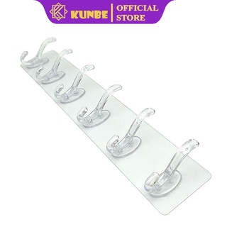 Thanh Treo Đồ Dán Tường 6 Móc Có Vỉ KUNBE, Siêu Dính Chịu Lực Tốt Tiện Dụng
