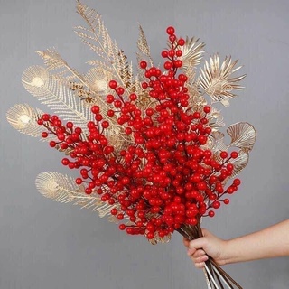 Cành Đào Đông Đỏ GLAMO HOME Cành đào 6 nhánh 12 nhánh trang trí ngày tết, ban thần tài, phòng khách