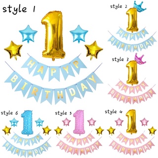 Set trang trí sinh nhật 1 tuổi cho bé màu xanh, hồng
