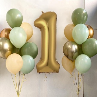 Set bóng bay màu trà xanh mattcha kết hợp bóng số y hình kèm duy băng