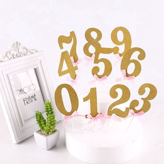 Que Cắm Số Trang Trí Bánh Kem Phủ Kim Tuyến Có Nơ - Phụ Kiện Trang trí Bánh Sinh Nhật Bánh Gato